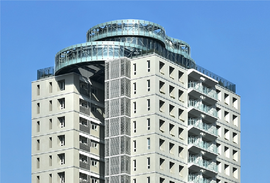 以音樂律動與自然肌理為意象,創造建築立面曲線,包覆建築的「圓」弱化建築的銳利邊角,多了幾分流動的韻律之美。
